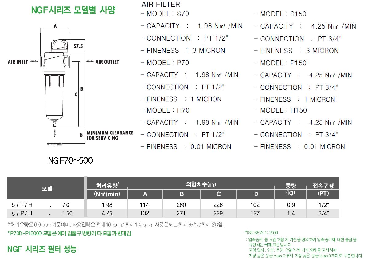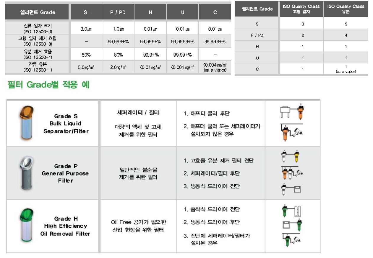 - ISO 8573-1에 의거 등급별로 에어필터를 사용하면됩니다